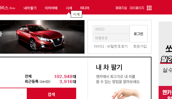 다들 눈치를 채셨겠지만 중고차시세표를 확인하기 위해서 참고하는 곳 바로 sk엔카라는 곳이 되겠습니다. 주소 입력이나 혹은 주소를 모르겠다 하시는 분들이라면 검색사이트를 통해서 sk엔카 검색하시면 바로 홈페이지로 이동을 하실 수가 있으니 가장 먼저 제가 알려드린대로 sk엔카 홈페이지로 이동부터 해주시면 되겠습니다.