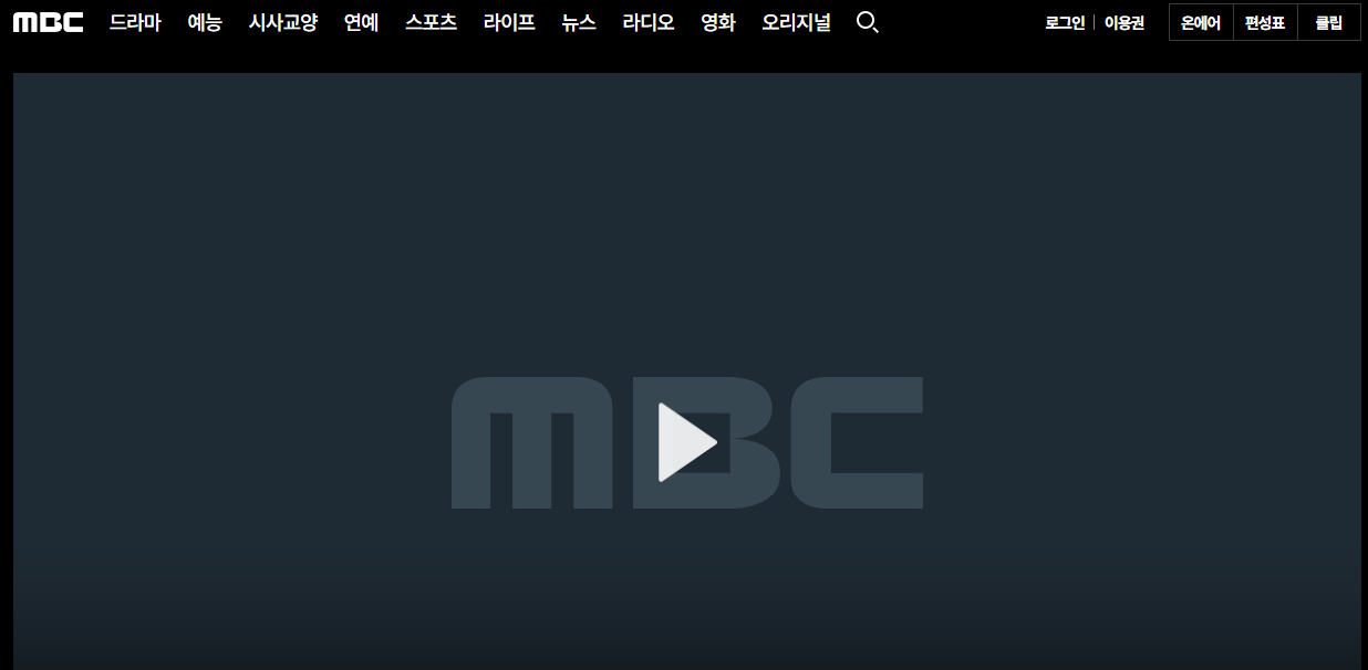 온에어라는 메뉴를 이용하시게 되면 위에서 보시는 것처럼 현재 방송중인 프로그램을 시청할 수 있는 플레이어가 나오는 것을 바로 확인을 하실 수가 있겠는데요. 굳이 플레이 버튼 누르시지 않아도 조금 있으면 바로 방송이 나오는 것을 확인해보실 수가 있지 않을까 생각이 됩니다.