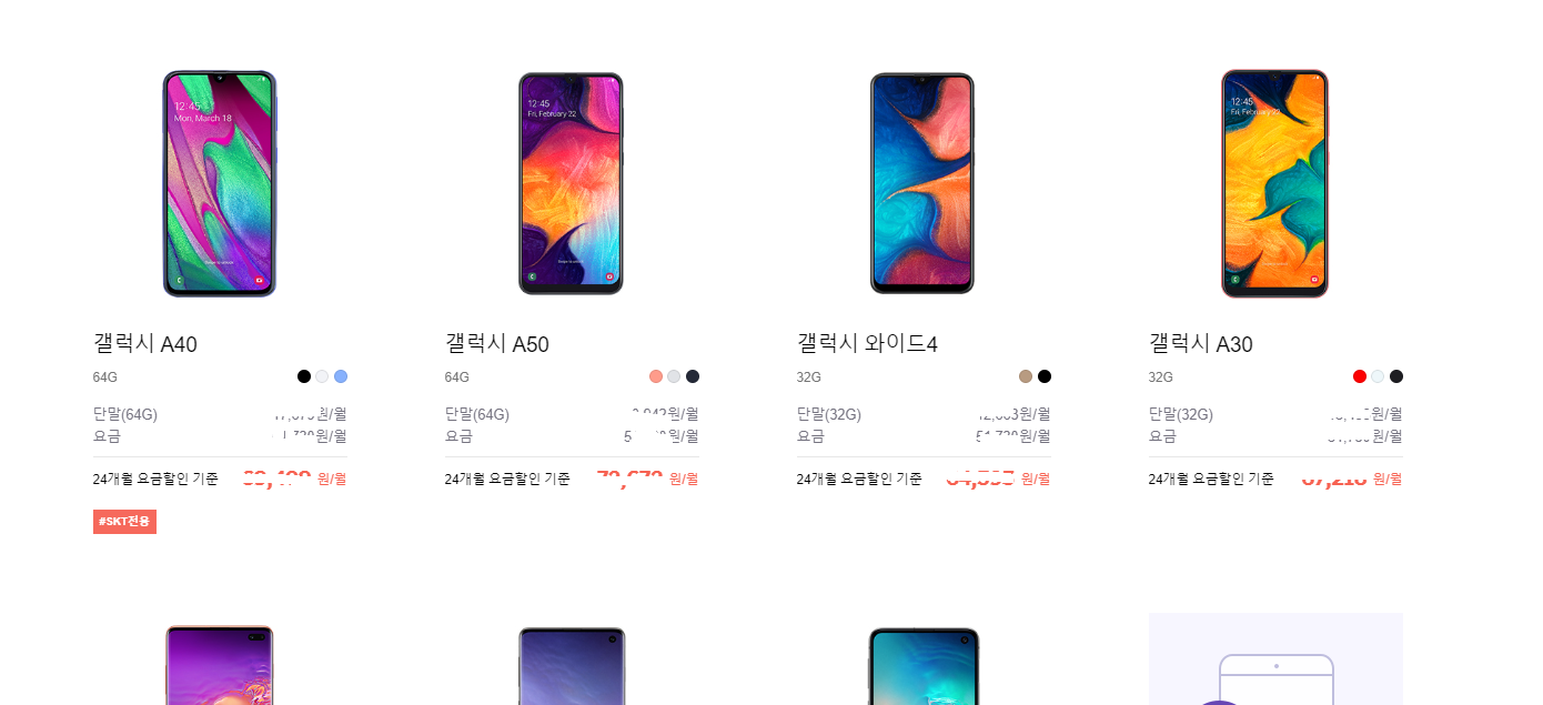 아무튼 제조사와 함께 요금제 그리고 할인방법을 각각 선택을 해주시고 나면 그 하단에서 세가지 검색 조건에 맞는 스마트폰의 목록을 간단하게 확인을 해보실 수가 있게 되겠습니다.