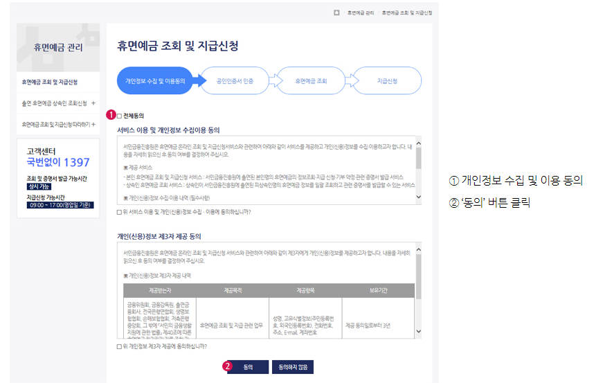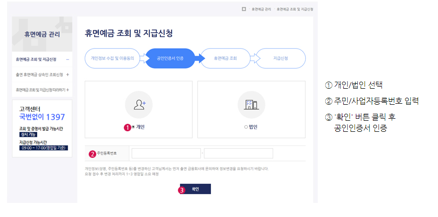 따라서 해당 서비스를 이용하시기 위해서는 사전에 여러분들이 방문하시는 은행에서 반드시 공인인증서를 발급받아 주셔야 한다는 점 꼭 기억을 해두셔야 하겠습니다. 아무튼 공인인증서를 통해서 본인인증을 하신 분들이라면 과정 계속해서 진행을 해주시면 되겠습니다.