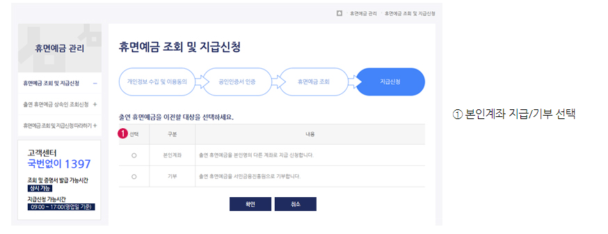 페이지가 이동을 하게 되는데요. 아래에서 보시는 것과 같은 화면에서 기부를 하실지 혹은 본인계좌로 돈을 송금할지 선택하는 메뉴를 확인하실 수가 있겠습니다.