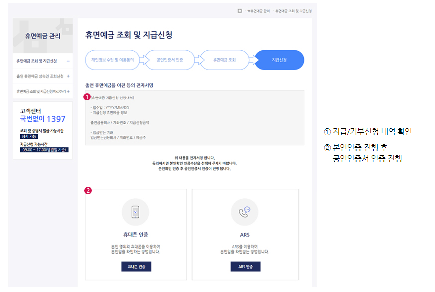 위에서 보시는 과정을 마무리하셨다면 이제 한번 더 본인임을 인증해야 하는 과정이 남아있는데요. 인증하는 방법은 휴대폰과 ars를 통해서 하시는 것이 가능하겠습니다.