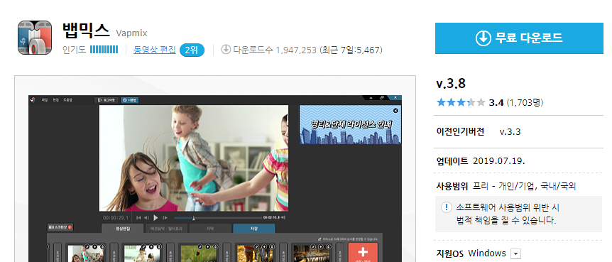 좌우지간 앞서서 알려드린 검색사이트에서 제공하는 자료실 홈페이지를 이용하시면 무료로 사용할 수 있는 파일 바로 받아보실 수가 있으니 필요하신 분들은 파일 받아서 설치 이후 바로 사용을 해보시면 되지 않을까 생각이 됩니다. 무료이니 부담없이 천천히 여러분들 마음에 드는 동영상 편집 해보시길 바라겠고 저는 이만 여기서 인사드리는 것으로 하겠습니다. 감사합니다.