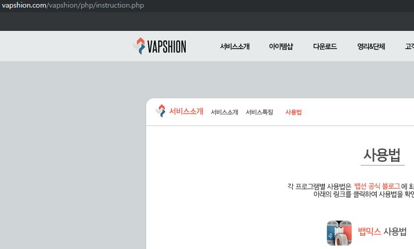 바로 위에서 보시는 화면이 뱁믹스라는 프로그램의 공식 웹사이트라고 할 수가 있겠는데요. 상단에 있는 서비스소개라는 메뉴를 눌러보시면 바로 뱁믹스 사용법이라는 메뉴가 나오는 것을 확인하실 수가 있게 되죠. 뱁믹스 사용법이라는 메뉴를 눌러주시게 되면