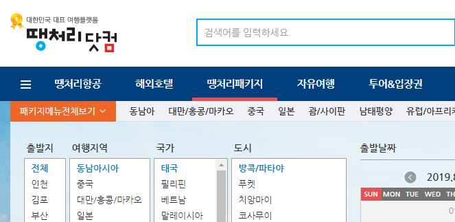 굳이 로그인을 하지 않는다 하더라도 여행을 예약하는 것이 가능하니 아이디를 만드는 번거로움은 감수하지 않으셔도 되지 않을까 생각이 되는데요. 아무튼 땡처리닷컴이라는 곳을 통해서 좀 더 저렴하게 여행 패키지 상품을 만나볼 수가 있겠습니다.