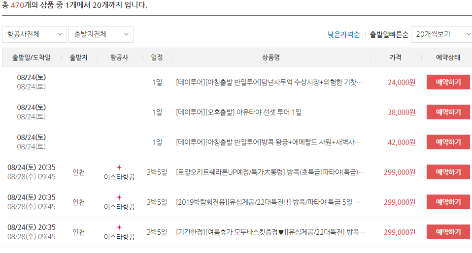 둘러보시다가 가격도 괜찮고 출발날짜도 다 괜찮다 싶은 여행 리스트가 보이신다면 해당 리스트를 조회 해주시면 되겠는데요.