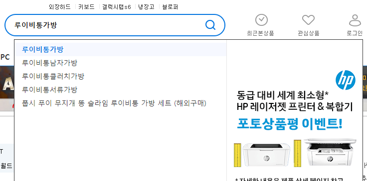 좀 더 세부적으로 검색을 하셨도 되겠습니다. 여성 혹은 남성으로 검색을 하시면 좀 더 정확한 결과를 확인할 수가 있는데요. 저는 그냥 루이비통 가방으로 한번 검색을 시도해봤습니다.