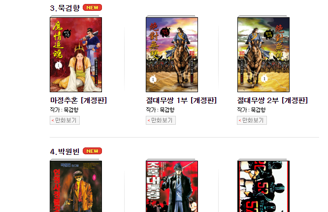 보시면 아시겠지만 묵검향 무료만화 뿐만 아니라 여타의 다른 작가들의 작품들 역시도 해당 홈페이지에서 무료로 바로 감상을 하시는 것이 가능하겠는데요.
