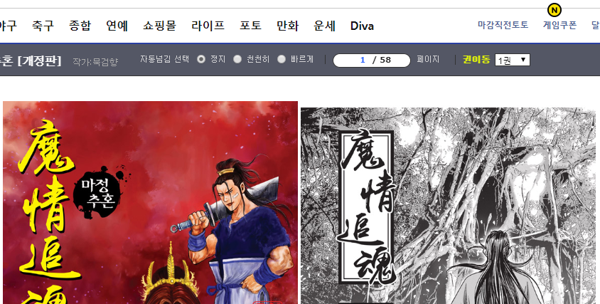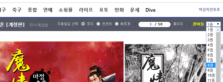 보시면 아시겠지만 자동넘김부터 시작을 해서 바로 원하는 페이지로 이동을 할 수가 있습니다. 아울러 묵검향 무료만화의 권수 역시도 간단하게 바로 선택을 해서 만화책을 감상하시는 것이 가능하겠는데요. 이렇게 보시면 아마 집에서도 얼마든지 심심한 시간 즐겁게 보내보실 수가 있지 않을까 생각이 되는군요.