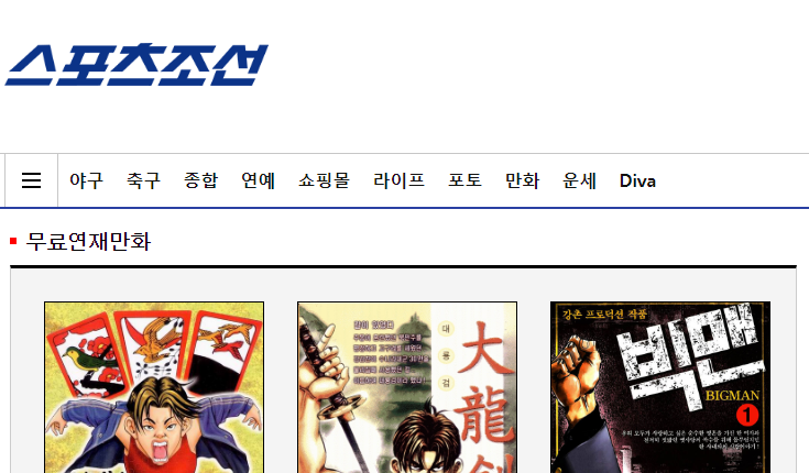가장 먼저 해주셔야 하는 것은 앞서서 말씀을 드린 것처럼 스포츠조선 만화 홈페이지로 건너가주시는 일이 되겠습니다. 주소는 워낙에 길어서 직접 입력을 하기가 상당히 까다로울 것이고 그 대신 간단하게 검색사이트 이용하시면 되지 않을까 하는데요. 스포츠조선 만화라고 검색을 해주시면 되겠습니다.