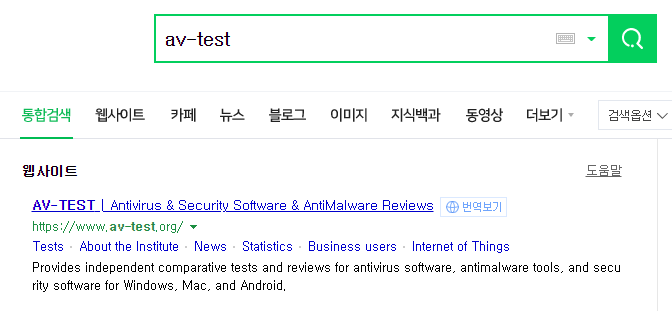 그래서 제가 알려드리고자 하는 순위를 확인하는 방법이 무엇인고 하니 바로 av-test라는 글로벌 보안제품 성능 평가기관의 결과를 확인하는 방법이라고 할 수가 있겠습니다. 검색사이트를 통해서 해당 기관의 홈페이지를 바로 안내를 받아보실 수가 있겠는데요.