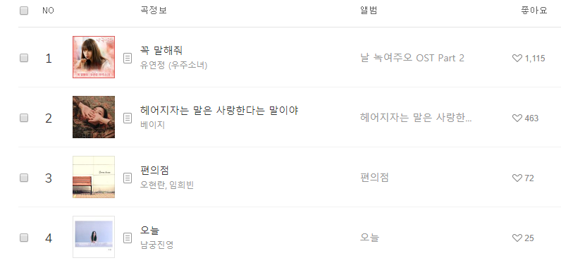 중요한건 단순히 순위만을 확인할 수가 있느넥 아니라는 사실입니다. 음악 듣기 서비스를 제공하는 곳이니 만큼 순위확인과 함께 바로 음원을 감상할 수 있는 공간도 확인을 해보실 수가 있겠는데요.