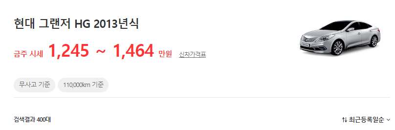 직접 보신 분들은 아시겠지만 내가 설정한 차량에 대한 그리고 sk 엔카에 등록이 되어있는 매물이 몇대나 있는지 바로 확인을 해보시는 것이 가능하겠는데요. 제가 선택을 한 차량에 대해서는 총 400대가 있다는 것을 확인할 수가 있었습니다.
