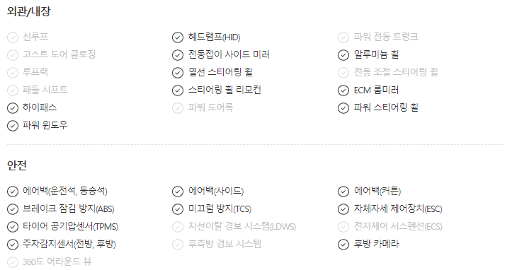 선택을 한 차량에 대한 더 많은 이미지들을 컴퓨터에서 확인을 할 수가 있었던 것은 물론이거니와 선택한 차량에 대한 옵션 역시도 간단하게 확인을 하는 것이 가능했습니다.